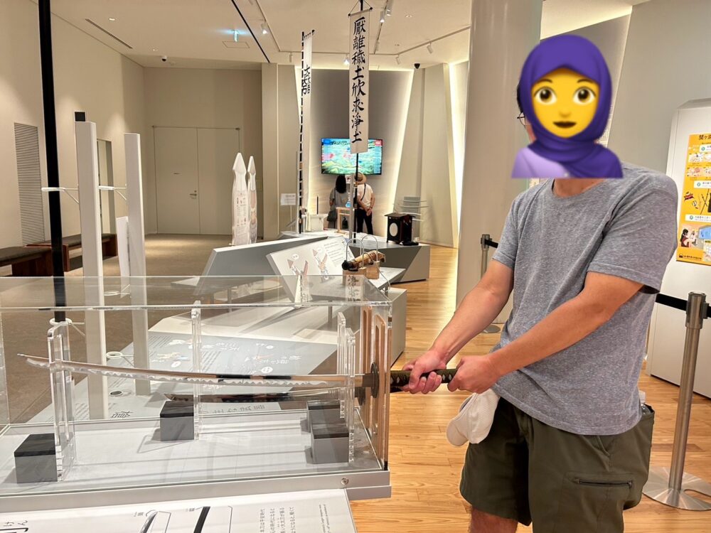 体験コーナーでは。刀を持ったり、陣羽織を羽織る体験ができます。